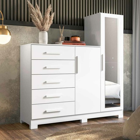 Tocador con espejo para dormitorio multifuncional, tocador contemporáneo con 13 cajones, tocador moderno de maquillaje con tapa de cristal blanco con espejo