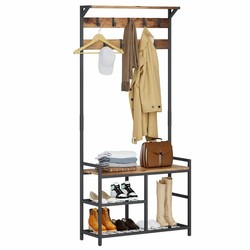 Cổ Điển Màu Nâu Kim Loại Gỗ Áo Giá Sàn Đứng Góc Lối vào Băng Ghế Dự Bị Áo Móc Áo Đứng Với Giày Lưu Trữ